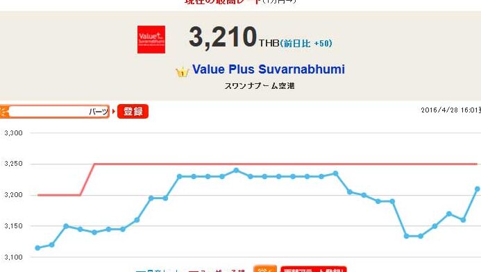 円バーツの両替レートが8日ぶりに3,200バーツ回復